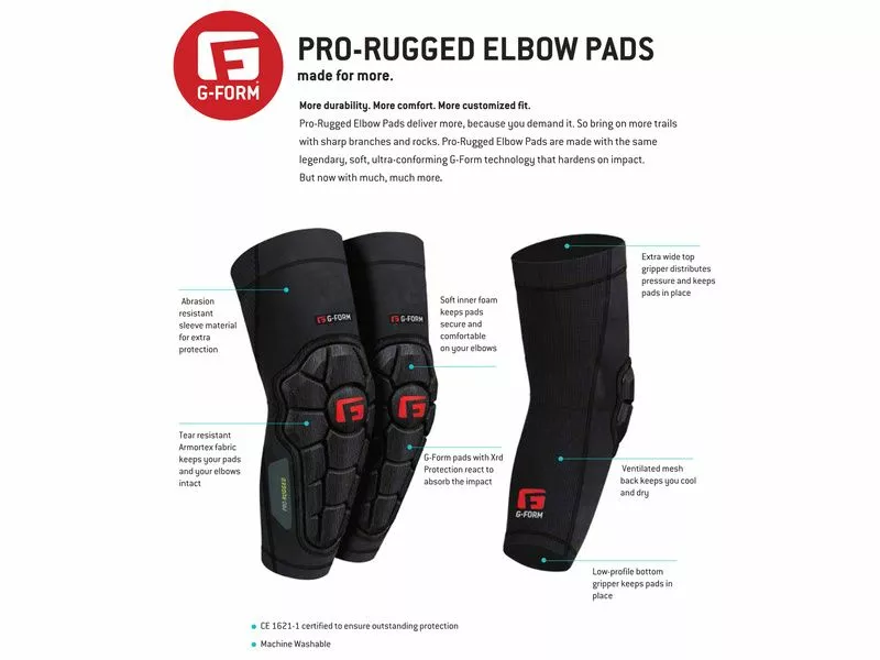 Remplaçantes des modèles Elite, les coudières G-Form Pro Rugged sont optimisées pour la pratique du VTT et offrent une plus grande liberté de mouvement grâce à l’utilisation de materiaux plus souples et résistants comme le Kevlar et l’Armortex. Niveau protection, les Pro-Rugged sont dotées de la technologie SmartFlex et sont fabriquées à partir de materiaux XRD qui ont le gros avantages d’être souples mais qui se rigidifient au moment de l’impact.