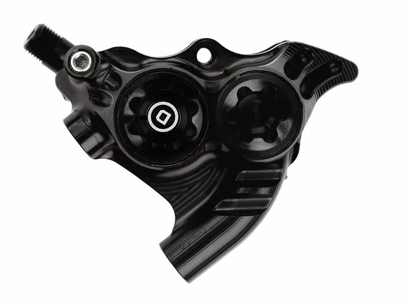 L‘étrier de frein Hope RX4+ est usiné à partir d’un bloc en aluminium 2014 T6 offrant une grande rigidité et un touché de freinage franc. Equipé de 4 pistons en résine phénolique (2 pistons de 14 mm et 2 pistons de 16 mm) ils sont ici développés pour fonctionner avec les freins à disque utilisant de l’huile DOT (Sram). L’étrier RX4+ est disponible en 6 couleurs d’anodisation (Bleu, Orange, Rouge, Noir, Violet, Argent) et est livré avec deux types de plaquettes (Bleues pour un usage route, et Rouges pour un usage Cyclo Cross / Gravel) .