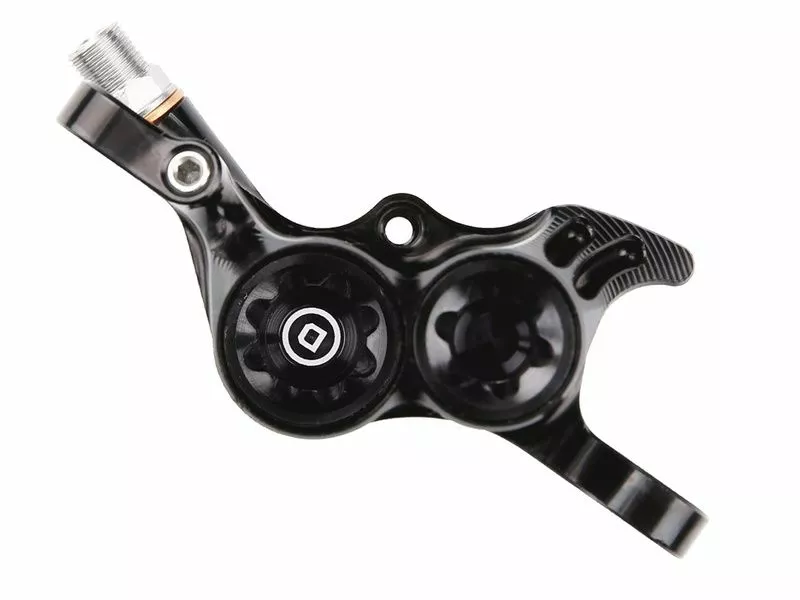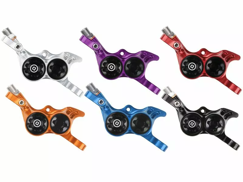 L‘étrier de frein Hope RX4+ est usiné à partir d’un bloc en aluminium 2014 T6 offrant une grande rigidité et un touché de freinage franc. Equipé de 4 pistons en résine phénolique (2 pistons de 14 mm et 2 pistons de 16 mm) ils sont ici développés pour fonctionner avec les freins à disque utilisant de l’huile DOT (Sram). L’étrier RX4+ est disponible en 6 couleurs d’anodisation (Bleu, Orange, Rouge, Noir, Violet, Argent) et est livré avec deux types de plaquettes (Bleues pour un usage route, et Rouges pour un usage Cyclo Cross / Gravel) .