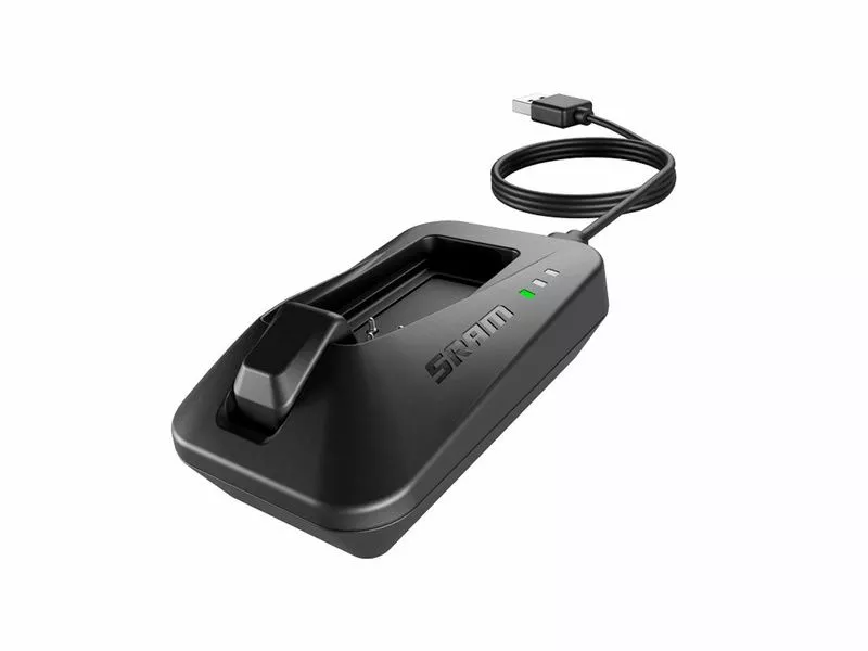 Les batteries SRAM se déclipsent très facilement pour être rechargées. Il suffit de relever (sans outil) le loquet de la batterie et de retirer la batterie fixée au dérailleur. Puis clipsez la batterie dans le chargeur USB et branchez le chargeur sur une prise USB ou un adapteur USB pour courant alternatif. Une recharge complète prend 60 minutes maximum.