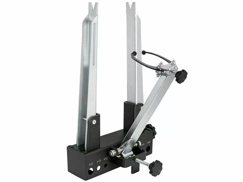 Le centreur de roue professionnel Unior 1689 est compatible avec les roues de 16 à 29 pouces et avec les moyeux jusque 157 mm de largeur. Il se fixe sur établi ou directement dans un étau et permet le réglage du voile, du saut et du parapluie grâce au bras comparateur ajustables latéralement.